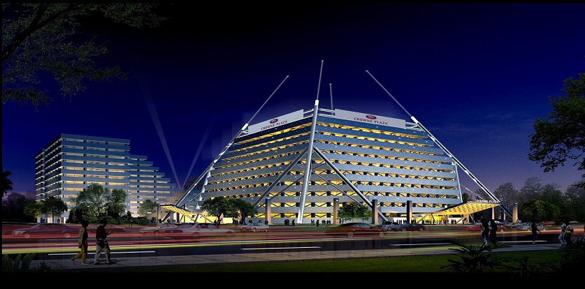 五星級酒店10層、酒店式公寓及寫字樓11層,均為框架-剪力墻結構。地上總面積112692平方米,其中酒店部分建筑面積40513平方米,客房總鑰匙數372,寫字樓部分建筑面積28390,酒店式公寓部分建筑面積41506平方米,總戶數為469。